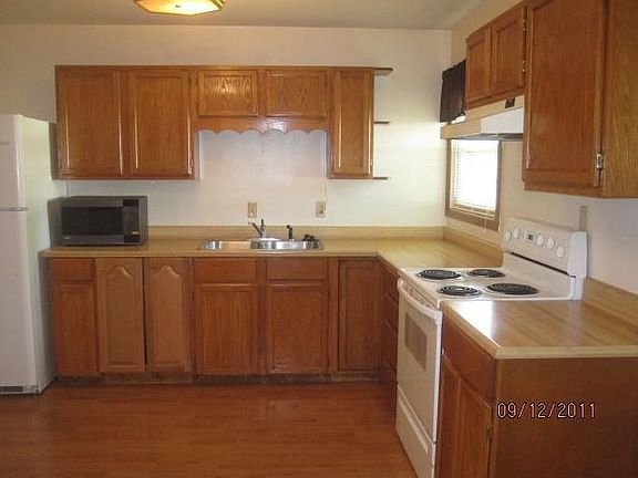 Ready to move right in--3 BR with large eat-in kitchen and large living room. Fenced in backyard and 2-car detached garage with opener. Stove & Ref. included. Enjoy the front porch in this quiet neighborhood. Just got a brand new roof on home and garage in Nov 2011.