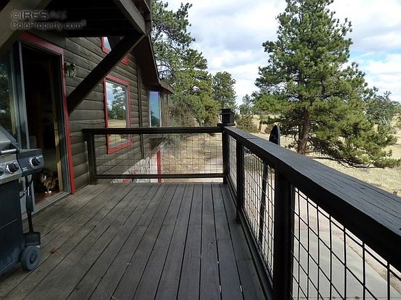 Log Home on gentle, treed, 2.58 ac. zoned for horses. Private retreat w/ open floor plan,eat-in kitchen opens to great room w/ soaring vaulted ceilings, wood stove,& living/TV room all w/ beautiful valley views. Main floor master- 3/4 bath/walk-in closet. 2 Loft bdrms, w/ full bath and balcony deck. Walkout lower level w/rec room, storage, and 2 garages. Relax on the deck and enjoy the outdoors, fresh morning air or starlit nights after a hard day of work or play - easy 45 minutes to Ft Collins!