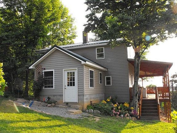 LOTS OF POTENTIAL WITH THIS AMISH BUILT HOME. BEAUTIFUL CUSTOM WOOD RAILINGS ON THE WRAP AROUND PORCH WITH ENDLESS MOUNTAIN VIEWS. LOG BEAMS, WOOD FLOORS, CUSTOM BUILT KITCHEN CABINETS IN OPEN, EAT-IN KITCHEN. UPSTAIRS ARE 3 BEDROOMS & LIVING AREA. FULL BASEMENT HAS PLENTY OF ROOM FOR A WORKSHOP, STORAGE, FREEZER AND CANNED GOODS. BEAUTIFUL GARDEN AND WOODS FOR HUNTING AND ENJOYING ALL THE WILDLIFE. OWNERS STATE WOOD SHED WAS BUILT IN 1919. HOME WILL NEED UPGRADES INCLUDING ELECTRIC, HEAT & WATER HEATER OR USE ALTERNATIVES AS CURRENT OWNERS DO. BATHROOM DOES NOT HAVE SINK AND WOULD NEED TO BE RE-CONFIGURED. SINK IN LAUNDRY/MUD ROOM, MEDICINE CABINET DOES NOT CONVEY. CURRENT OWNERS USE WOOD STOVE,WOOD BURNING WATER HEATER AND SOLAR WHICH DO NOT CONVEY. CURRENTLY USING NON-DEEDED SPRING. PROPERTY HAS APPROXIMATELY 15 ACRES AND IS PART OF A 54 ACRE PARCEL AND WILL NEED TO BE SURVEYED OFF OR BUY ENTIRE PARCEL WITH TWO HOMES, GUEST HOUSE AND LOTS OF OUTBUILDINGS. SEE MLS #35363.