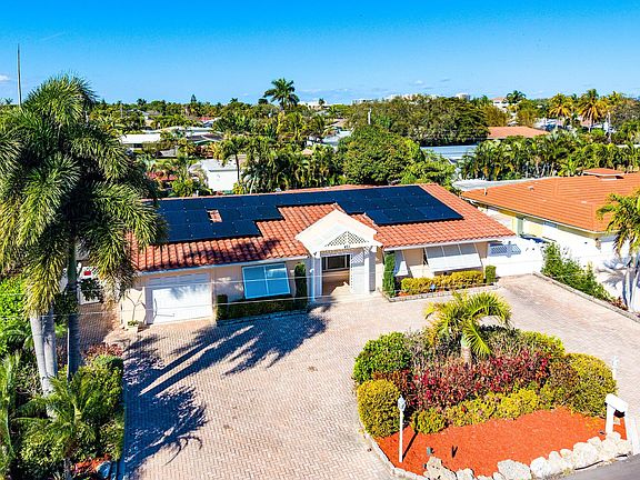Rarely available and one of the neighborhood's larger residences at nearly 2,200 sq. ft., this 4BR/3BA gem offers the ultimate South Florida lifestyle. The open-concept, split-bedroom floor plan has been meticulously refreshed with new paint on all walls, doors, trim, and ceilings. Travertine marble floors flow through the living areas, while warm wood laminate adds comfort to the bedrooms. The expansive primary suite is a true retreat, featuring a walk-in closet, dual vanities, a Jacuzzi tub, and direct access to your private tropical oasis. Outside, enjoy a heated saltwater pool and spa surrounded by lush landscaping. Value-added upgrades include roof-mounted solar panels for low energy bills and dedicated side-yard parking for a boat or trailer. Perfectly situated just a block and a half from the Intracoastal and only 1.5 miles from Boca Raton's pristine beaches. Enjoy being minutes from Mizner Park, Royal Palm Plaza, and a quick drive to Atlantic Avenue in Delray Beach. With convenient access to I-95 and two international airports nearby, this location simply can't be beat.
