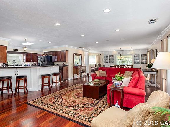 Remodeled and gorgeous concrete block home on .75 acres in the middle of town! This 5 bedroom 4 bath home plus study has so much to offer. This open floorplan great room concept has wood floors, solid surface counter tops, tons of cabinets and counter space that overlooks the great room. Plenty of room to entertain for the Holidays with a dining area with a built-in buffet that is suited for an 8-10 person table that also is open to the great room. Need a private space for a live in parent or older child? This home also has an in-law suite complete with walk-in closet, bathroom, kitchenette, and their own exterior entrance. Looking for outdoor space? Relax on the large screened porch overlooking your private pool, detached 3 car garage and workshop area, and gorgeously landscaped yard. Looking for storage? This home offers a huge storage room in the middle of the house and too many closets to count throughout the home! All in a central location. This house will WOW you from the moment you pull up!