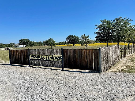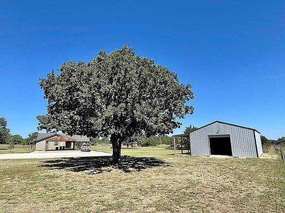 The handmade, custom built entrance sets the tone that leads to this great find, along with beautiful custom country flagpole base and decor, greeting you up the drive to this Beautifully built cabin-themed farmhouse built in 2017 with 3 large bedrooms and 2 baths and a spacious, open living area with custom woodwork and timber beams spanning the living area.Rustic wood burning stove and rockwork all the way up to the peak.Beautiful handcrafted wood cabinets and beams throughout spacious kithen and bar that opens up to living area.Spacious pantry and closet in hallway, with barn-sliding door and Cannon 52 gunsafe.. Laundry room with shelving off of kitchen entrance way. 14 fully-fenced acres with coastal and bluestem grasses and scattered oak trees. Enjoy the quiet of the country-side from two covered porches and store your essentials in the new 30x40x12 shop that comes complete with 10ft lean to, electric and spray-foam insulation and 90% complete trimmed out interior.24x24 custom built carport and decorative wellhouse. Added bonus varmit-proof chicken coop and brand new storm cellar.Only one hour from the metroplex, this property is located in an ideal setting outside of city limits, with abundant wildlife.
