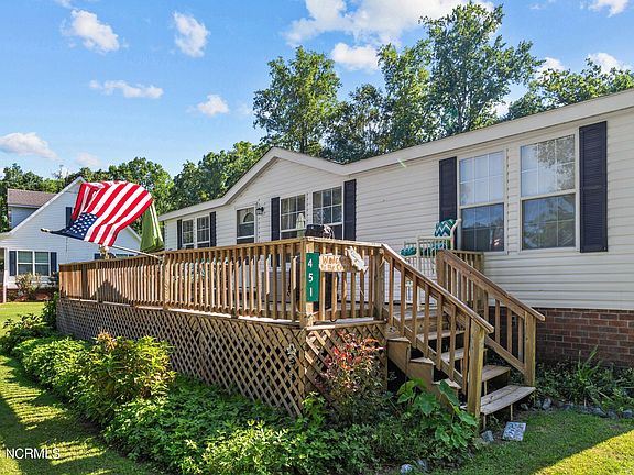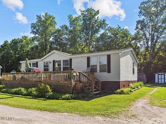 Ready to slow down and start enjoying life on the creek? Well now's your chance to live the dream on Blounts Creek. Schedule a time to view this water front property. Well kept double wide with all new flooring, 3 beds, 2 full baths on 7.58 acres of land on a hill so no need for flood insurance here. Pier has enough room to tie up 3 boats. Pier has water and electricity. Property also includes two storage buildings, a man cave with water and electricity, a shelter and a chicken coop. No HOA and no covenants. Break out your boat and fishing rods and head on down to the creek today.