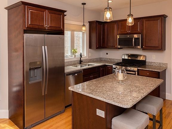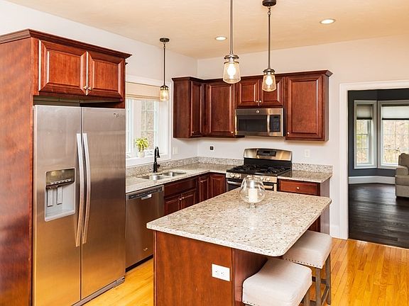 - Features: Bathroom - Half, Flooring - Hardwood, Kitchen Island, Cabinets - Upgraded, Deck - Exterior, Exterior Access, Stainless Steel Appliances, Gas Stove, Lighting - Pendant