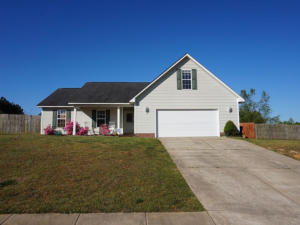 Spread out in this charming 3 bedroom 2 bath ranch style home with a huge fenced in back yard just over the county line! This home features an updated kitchen with an open floor plan and a split upstairs bonus room. Walk your kids to Rockfish Hoke Elementary along the sidewalks in this quiet, spread out neighborhood. Feel away from the hustle and bustle but still be close to shopping and Fort Bragg. This home features a spacious two car garage, covered back patio, playground, security cameras with dvr recording and a hardwood shed.