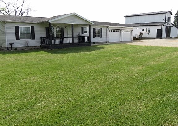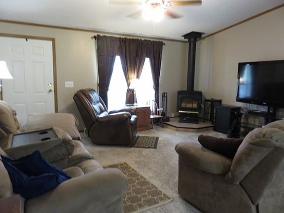 Beautiful and like new manufactured home has 3 bedrooms, 2 full baths, 2 walk in closets, lots of cabinets in kitchen, newer carpets, 2 car attached garage, new well and water lines, 40 by 48 Pole Barn with 3 horse stalls, fenced in pasture, over 12 acres next to Cabin Creek with trail all the way back to end of property, 1/2 mile!! Large OAK trees, large Sycamore tree by creek, very peaceful property, you'd be glad to call your home!!