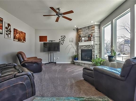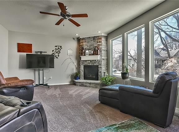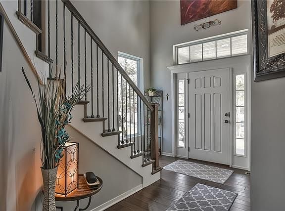 Olathe Neighborhood Revitalization Act. Homeowners save over $30,000 over 8 years left with 90% Property tax abatement(estimated) No HOA, In the heart of Olathe. New home with all updated features. Open floor plan, stone fireplace, wood floor, grand 2 story entry. Mature trees surrounding home and close to highways, retail and schools. The open Living Room and Kitchen make the living space great for entertaining. The Laundry Room is located on the Bedroom level for added convenience. The Master Bedroom is very spacious, as is the Master Bathroom with a great walk in closet. Dramatic winded staircase. Finished basement with extra entertaining room. No short of windows in this home.