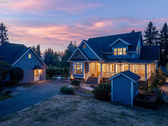Welcome to 451 S. Wilda Rd! This secluded NW Contemporary built in 2022 is your rural sanctuary just minutes from Lake Oswego and West Linn with low taxes from a Farm Deferral. Step up to the wraparound farmhouse porch and the grand entrance to this custom home. 4.52 Acres of rolling pastures, private woods, paths, fire pit, gardens and orchards. 30'x30' Barn in addition to a 1,181 SQ FT Auxiliary Building. This scenic property provides valley views from the beautiful back deck with stacked stone outdoor fireplace while the property line backs to Oswego Hills Vineyard. Enjoy country living in the Stafford Hamlet of West Linn!