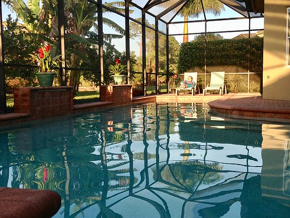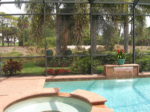 Pre-listing price. Substantially furnished. Custom home; not a DR Horton! Stunning, impeccably maintained custom home, built in 2006 by Tom Surette with all the upgrades. 3 BR, plus den, 4 1/2 BA, plus outdoor hot/cold shower! Solid 6 panel wood doors throughout, granite and marble countertops and bath enclosures, 18" diagonal tile, cove ceilings with tray lighting, oversized 2 car garage. Dimmers on every light! Ceiling fans in every room. Great room floor plan with water view over Horse Creek and Imperial golf course. Oversized custom salt water lap pool with spa spillover, WiFi JandyLink, and THREE beautiful waterfalls. Outdoor speakers provide music in the lanai and pool area. FOUR thermostats create FOUR separate AC ZONES for maximum control and comfort. New AC units in 2015. Home is being offered for sale substantially furnished.