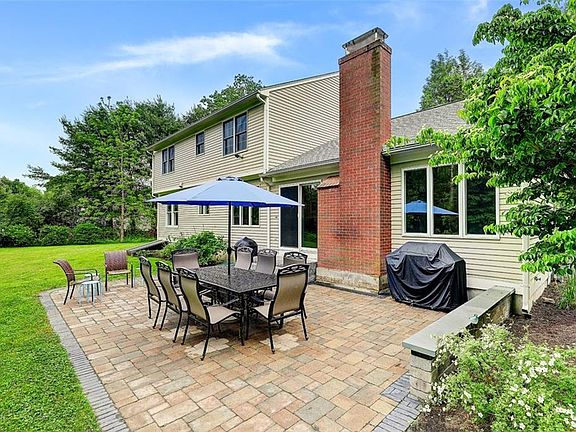 Spacious Colonial in excellent condition on a beautiful 1.9 acre lot. House graciously sits back off of the road amid cedars and pines. Driveway is lined with lace capped hydrangea and a lovely wisteria lined pergola. The house has central AC, and ample space for a large family with four generous bedrooms including a large master suite, walk in closet, and a nicely appointed master bath. The center island kitchen has granite and tile and has a large eat-in area over looking the huge back yard. There is also a generous sized dining room and adjacent large living room. The den has a vaulted ceiling, brick fireplace and a slider out to the large bricked patio. House has a newer roof and fresh paint, just move in and enjoy. The flat backyard has a perfect location for a pool just off of the patio. Sun filled and open floor plan make this home a true delight. Private yet part of the Mourning Dove neighborhood association. Saunderstown is centrally located in RI, just 20 minutes to the airport and train station, and 10 minutes to RI's famed beaches.