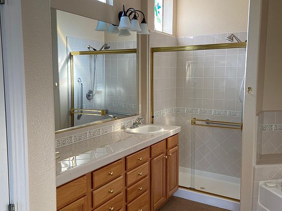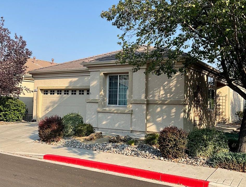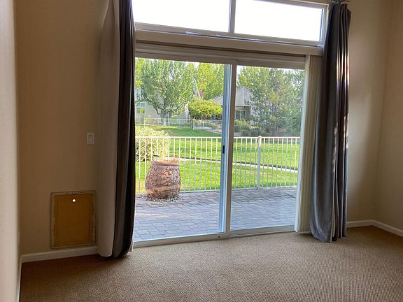 This open floor plan 2 bed 2 bath home is part of quiet and gated 55+ community. Features a large den/office that could be used as a guest bedroom. Primary suite has large walk-in closet and slider out to patio overlooking green belt. Also a dog door for smaller dogs to get in and out. Kitchen features all stainless steel appliances. Attached garage and community green belt with walking paths through neighborhood and close proximity to the walking trails of Bartley Ranch. Community also has community clubhouse available for reserved use and many community events. Close to Rancharrah, Bartley Ranch, restaurants, pharmacy, gas station and easy access to freeway. Small pets ok upon approval. 1 year lease term minimum. Must provide completed Zillow application to apply. MUST BE 55+ for application to be considered. Will not respond to queries regarding age it is a community requirement and not negotiable. Home in 55 and over gated community Available now! 1 year lease term minimum. Must provide completed Zillow application to apply. 55+ community. MUST BE 55+ for application to be considered.