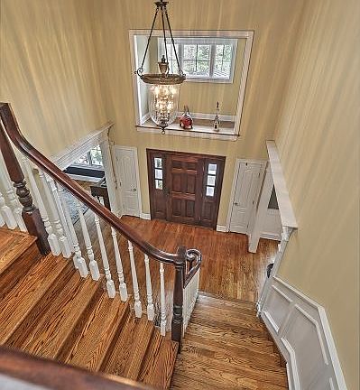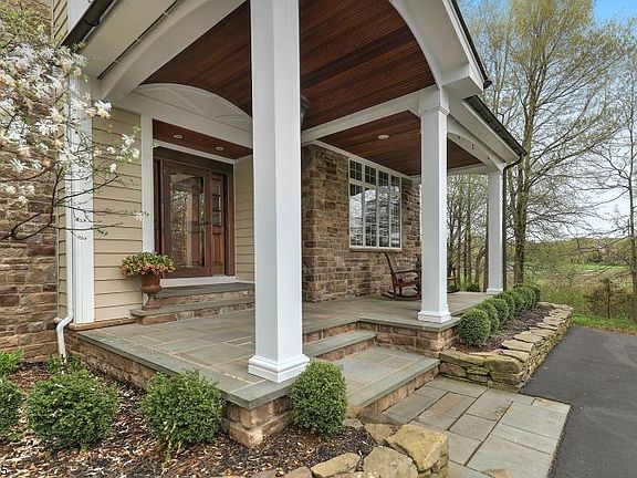 Nestled at the end of a long driveway, this special stone front Colonial welcomes you home with a covered rocking chair porch and wide mahogany door. Inside, volume ceilings and generous room sizes are framed by classic wood moldings while formal and casual living spaces create a seamless flow.