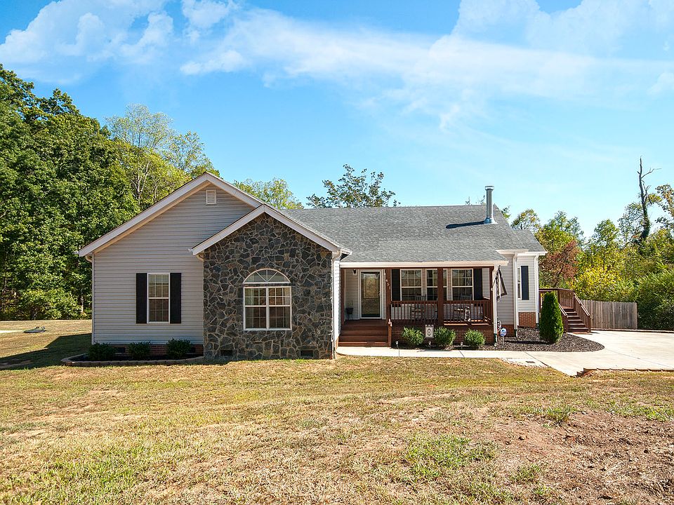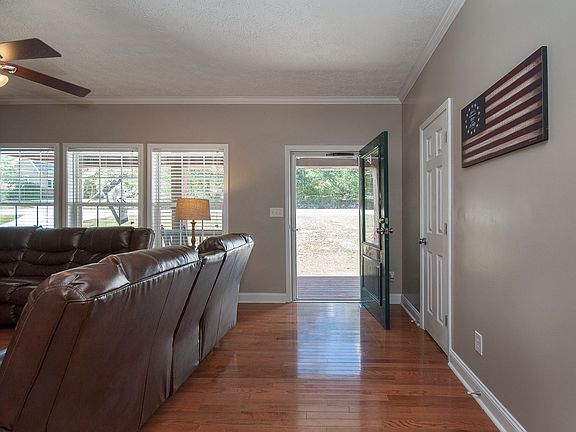 Very cute, clean 2 year old home with plenty of space. All modern decor and owner has chosen up to date colors. You will love the backsplash and all the kitchen cabinets. All Kitchen stainless appliances to stay. Hardwood floors and carpet only in the bedrooms. Large bedrooms and all have walk in closets. Very large master bath with 2 sinks. Even the hall bath is large and has double sinks. Fenced in yard will be great for privacy and cooking out. Large deck off kitchen. This is a modular home that has been financed as a stick-built home by USDA at a major bank. You will not be disappointed with this cute home. Great curb appeal and extra paved area for parking. Maintenance free vinyl and stone home.