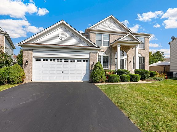 Lovely colonial on cul-de-sac in sought-after Manchester Lakes Estates. Majestic brick front, meticulously updated interior, spacious patio in private landscaped backyard. Tasteful decor throughout, freshly painted interior, newly carpeted in living and dining rooms, hardwood floors in entry, hallway, and family room. Manufactured hardwood floors in kitchen, upstairs hallway, bedrooms, and first-floor office (possible 5th bedroom). Expansive kitchen with elegantly appointed upgrades and finishes, including granite counters and island, custom backsplash, stainless steel appliances, opens to ample eating area with sliders to patio and yard, plus family room warmed by gas fireplace. Newly remodeled bathrooms. Large primary bedroom includes walk-in closet and private en suite bathroom. Two-car attached garage. Full unfinished basement. Tucked away in quiet neighborhood yet close to major commuter ways, Randall corridor of shopping, entertainment, golf, parks, preserves, and award-winning district 158 schools! Don't blink, you'll miss it! A preferred lender offers a reduced interest rate for this listing.