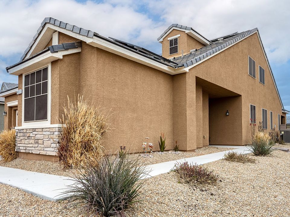 Don't miss out on this awesome 4 bedroom home at Desert Ridge Community. 451 Verbena Lane is a charming Single-Family home located in the residential neighborhood of Desert Ridge. The home features 4 bedrooms and 3 bathrooms, an over sized 2 car garage and plenty of upgraded features such as; stainless appliances including trash compactor, granite counter tops and tile backsplashes, new lighting throughout the home, ceiling fans throughout, custom barn doors, quartz countertops in the bathrooms, less than a year old carpet and luxury vinyl plank flooring, and walk in closets. The main floor offers 2 bedrooms and 2 bathrooms, laundry room, garage access, and the kitchen/dining/living area and upstairs is 2 more bedrooms and a bathroom. New A/C in May 2022. The rear yard is fully fenced making it pet friendly, and offers your very own pool and above ground hot tub. Solar Panels provide for a lower utility bill and are connected to the pool in case you want to heat it. So much to offer in this home, it is definitely a home to put on your list to check out. HOA is currently $70/month and takes care of the common area maintenance.