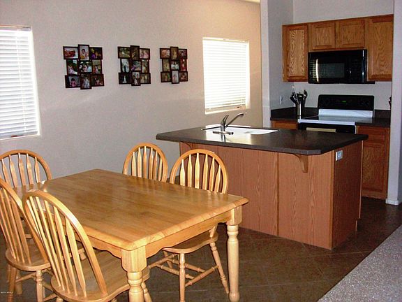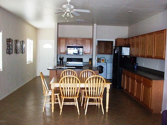 What a great home in a great location! Circle City is about half way between Wickenburg and Surprise. This is an energy star-rated, well-maintained 2005 home with 1,297 sq ft, 3 bedrooms, 2 full baths, 2-car garage, covered patio, and block fencing in the backyard. Children’s play equipment will convey. Features include R23 walls, R38 attic, low e-dual pane windows, ceiling fans in living area and bedrooms, oak cabinets, smooth top range, prewire for computers, phone and TV, and prewire for satellite, surround sound speakers and security system. No HOA but there is an active voluntary community group Friends of Circle City which provides programs and community-enhancement projects. The annual fee is $30 per household. Great price! Convenient location. Call for an appointment today!