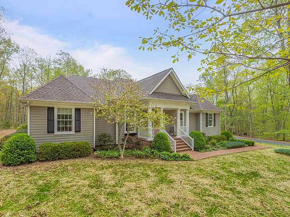 Our custom built 3 bedroom, 3.5 bath home has been meticulously maintained by our original owners. There is 2,643 sq ft of beautifully lit living space with select oak floors, 3 on-suite bedrooms, a family room fireplace, Corian and stainless steel in the kitchen, carpeted bedrooms, an oversized 615 sq ft garage and 4.38 beautifully wooded acres. We are cultivating a new front lawn and it is a gentle stroll around the boundary lines. Come and check out the office/library, the home office, laundry room and the delightful rear brick patio where you can while away the hours. We have a paved driveway and State roads, and we are just minutes from Zion Crossroads
