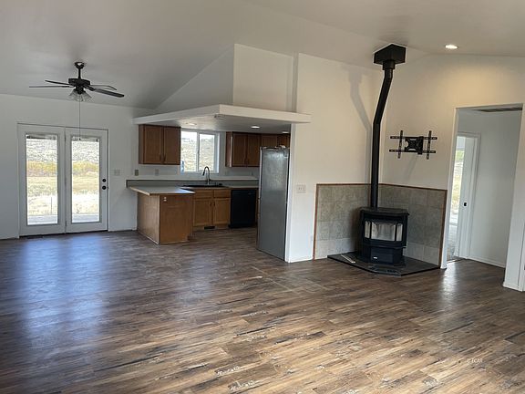 - Features And Inclusions: Flooring- Vinyl, Dishwasher, Garbage Disposal, Microwave, Refrigerator, Flooring- Carpet, W/D Hookups, Oven/Range- Electric, Walk-in Closets, Trees, Deck(s) Uncovered, Flooring- Tile, Fenced- Full, Vaulted Ceilings, View of Mountains, Gutters & Downspouts, Pellet Stove, Ceiling Fan(s), Chandelier(s), Landscaping: Rock, Horses Allowed