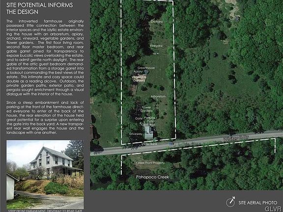 Stunningly restored & lovingly maintained 1902 farmhouse overlooking the Pohopoco Creek. A glass curtain wall that runs the height of the entire back of the house provides bucolic views of the arbor, orchard & vegetable and flower gardens. The architect of the restoration won an award for his design and environmental considerations included.