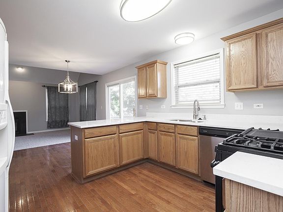 Good looking 3 bedroom, 2 1/2 bath with full finished basement with 9" ceilings and its a lookout with sunshine coming in. House faces west for awesome sunsets. Big backyard. Home features brand new quartz countertops with stainless steel sink. Hardwood floors in LR/DR and kitchen. Freshly painted throughout. New carpet in family room and all bedrooms. New light fixtures. Big master bedroom with walk in closet, master bath with separate shower/tub, double sinks. Family room with soaring ceilings and fireplace. Finished full basement with 4th bedroom. Brand new hot water tank.