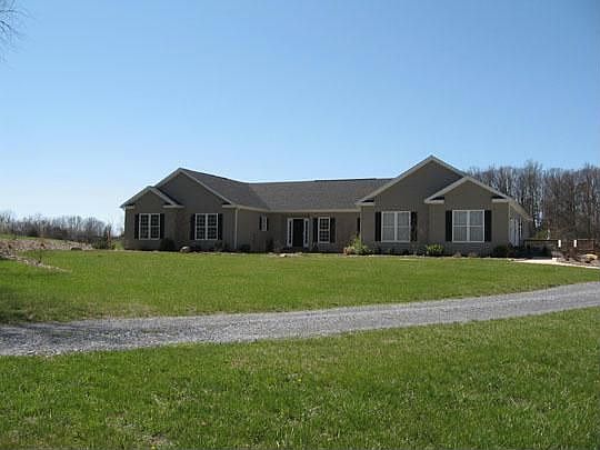 Superior off-site built home with homeowners special touches to style and craftmanship. Open floor plan with Southern Living design. Detailing with crown molding throughout. Dream kitchen with breakfast bar and nook, top of the line stainless steel appliances, and Corian countertops. Home office/4th bedroom. Loads of storage. Awesome 1000 ft. of decking! Unfinished basement wired for workshop. Blue Ridge and Massanutten Mountain views and large pond! Need to see to appreciate