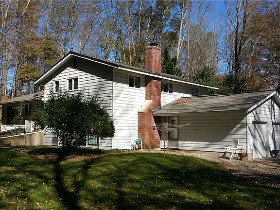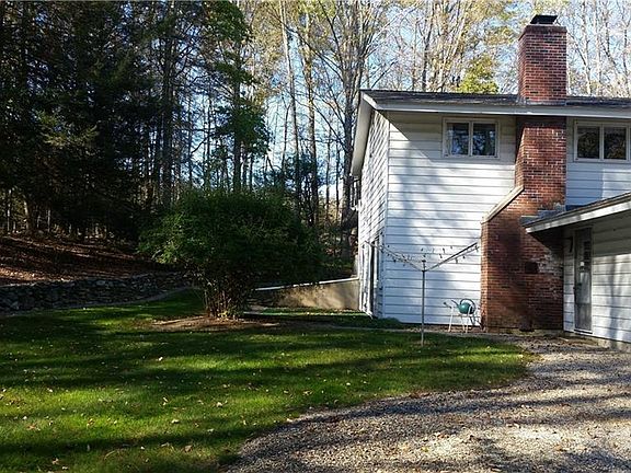 An amazing 4.2 acre property surrounded by trees and stonewalls on a desirable road in town. This split level home offers lots of space with a great floor plan. Upon entrance through the front door you are greeted by a spacious foyer with the living room to the right that offers a wall of floor to ceiling windows overlooking the beautiful country setting. A formal dining room is between the living room and the eat-in kitchen with two skylights for letting in lots of natural light and access to the private back yard. The upper level has 4 spacious bedrooms, including a master suite with a walk-in closet and full bathroom. The lower level has a spacious family room with an exposed brick wall with a wood stove insert, built-in cabinets and shelves, and glass sliding door to a back patio. There are two additional rooms with closets on the lower level that have lots of possibilities - home office, exercise room, playroom, or guest bedrooms. The laundry room with a utility sink and closet is conveniently located. An unfinished basement has lots of storage space. Nicely paved driveway leads to an attached 2-car garage. Features include Andersen windows through-out, two Mitsubishi ductless heat pump units for heating & cooling, attic fan, and hardwood floors in the bedrooms and under carpets in the living and dining room. A little updating will make this home be the gem of the neighborhood!