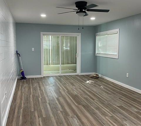 Complex offers pool, tennis courts, trash, sewer, water (including hot water), exterior maintenance. Completely renovated in 2023 with new flooring (LVP) No carpet anywhere!! new wiring, electric panel box, new A/C, granite counter tops, stainless steel appliances, shiplap accent walls just to mention a few. It's a MUST SEE!