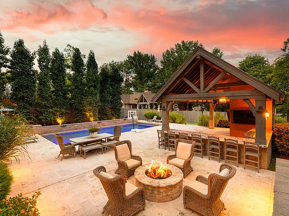 This backyard is a CAN NOT miss for the entertainer! Full sized basketball court, stunning pool, and huge cabana with bathroom. Massive screened in porch with fireplace for entertaining. Master bedroom down with huge en suite bathroom. Kitchen with huge eat in island open to living room with fireplace. Formal dining room off of living room. 3 bedrooms upstairs with 3 bathrooms and a HUGE rec room.