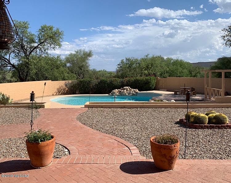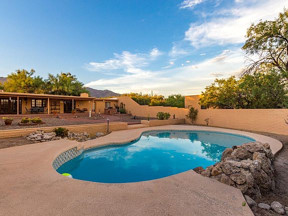 Swan/!Sunrise 4 bed/2bath on 1.4 Acres for only $489,900. Walking distance (5 mins) to Catalina Foothills. Over 2,000 sq ft home plus HUGE 820+ sq ft Workshop/Garage that already has electric and HVAC. This separate area only needs plumbing and interior walls to make an amazing guesthouse! In addition, the 4th bedroom is off the garage and has a separate entrance. Beautiful (HUGE) backyard with sparkling pool (was just resurfaced), waterfalls, fountains, covered patio (that spans the entire length of the home), new roof, newer windows, burnt adobe under stucco for energy efficiency and all in a quiet, safe neighborhood. Views of the City lights (and the greatest firework views)