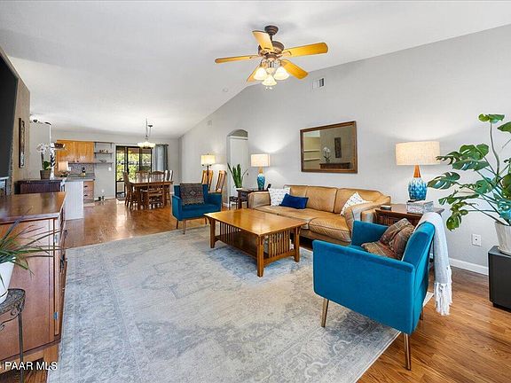 WELCOME HOME! This quaint home is ready for memories to be made. Step into the clean, welcoming living room; open to the kitchen and dinning area. You will not be disappointed in the size of the master bedroom and bathroom. This gem has been well loved and cared for. New roof and gutters in 2021, new AC 2021. This beauty is minutes from all amenities.Let's talk yard.....what an oasis this yard is, with beautiful fruit trees, gardening area, gazebo, new above ground pool (can be left or removed). You will feel a million miles away from the world in your private back yard. DO NOT miss this MOVE IN READY home under 400K in beautiful Prescott!!