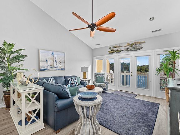 ABSOLUTELY STUNNING direct Intracoastal Waterway condo in Lightkeepers Village! This end unit offers the utmost privacy in the last building at the quiet and peaceful end of the complex. A spacious and open floor plan features soaring vaulted ceilings, three bedrooms and two baths. This is certainly not your typical condo and feels as if you've stepped into a model home. Renovated over the past few years from top to bottom with all the newest finishes and features. As you enter the unit, you'll find smooth ceilings and a soothing neutral gray paint color throughout. The flooring has been upgraded to a gray wash, wide bevel luxury vinyl plank for easy care and maintenance. The kitchen is an absolute dream! New white shaker cabinetry has been installed along with a gorgeous quartzite countertop and coordinating tile backsplash. New Kitchen Aid professional line stainless appliances accent the classic white kitchen as the finishing touch. The kitchen also includes a breakfast nook perfect for morning coffee. The living area is spacious with a vaulted ceiling that combines with a dining space. A bank of french doors allows an expansive view of the waterway and allows access to the balcony. Two secondary bedrooms provide plenty of room for guests and share access to a jack and jill style hall bath. The primary suite offers privacy from the rest of the condo. Windows and french doors flank both walls of the bedroom for maximum views. The primary bath has been beautifully upgraded with a tiled walk in shower and free standing tub. The double vanity has it's own space and gives plenty of room to get ready. All bathrooms have new quartzite countertops, new plumbing fixtures, toilets and lighting. Other features of the unit include new lighting throughout, custom window shades and shutters and a sizeable laundry closet with washer and dryer. The condo is fully turnkey and includes all furnishings and appliances with some minor exceptions. All furnishings and decor are like new and offer a sophisticated coastal look. The location of this condo can not be beat either! Meant to maximize outdoor living and the waterway views, the back balcony of this unit is divided into three separate living spaces that can be used alone or together. The middle section is screened while the others are open. An attached exterior storage closet offers a place to keep beach equipment and toys. The views are amazing and allows for an unobstructed south ICW view. Lightkeepers Village is a peaceful community with a prime Little River location. The newly renovated boardwalk in front of the unit has secured access and is only for residents. Low HOA fees, plentiful parking and wonderful community amenities make this a popular complex. Don't miss this rare opportunity to own such an amazing turnkey property. Schedule your showing today! All information is deemed reliable, buyer is responsible for all verification.