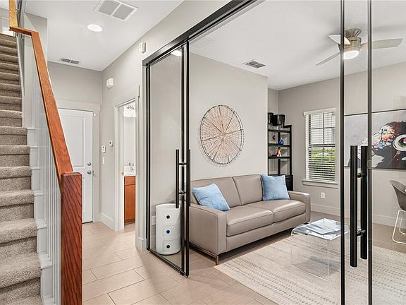 Experience the pinnacle of luxury in this Baldwin Park townhome, offering stunning park views and a short stroll to the scenic Lake Baldwin . Expect to be impressed as you enter this stunning, end unit, 4 bedroom, 3 ½ bath residence boasting high end finishes throughout and 2179 SF of bright and inviting living space! Upon entry, you’re welcomed by a versatile first-floor space featuring soft-close glass doors and a private full bath. This flexible space is ideal as a home office, guest suite, or cozy den. On the main floor, the open living spaces are designed for everyday comfort and stylish entertaining. Gorgeous, engineered wood floors flow throughout, bringing warmth and timeless style to the home. The gourmet kitchen takes center stage with a striking Quartz waterfall island with breakfast bar, glass tile backsplash, sleek cabinetry, and stainless appliances. It flows effortlessly into the stunning great room filled with natural light from an abundance of windows offering a tree-top view of Blue Jacket Park, all adorned with motorized pleated shades for elegance and convenience. The dining room features a gorgeous light fixture, creating a stylish setting for meals and gatherings. Retreat upstairs to the primary suite with tray ceiling, and an impressive, updated bath featuring stone counters, dual sinks, walk-in closet, and spacious glass-enclosed shower. Bedrooms two and three are joined by a thoughtfully designed shared bath. Enjoy the outdoors with a charming first floor covered porch and second floor covered patio, perfect for taking in the views. Updates include: freshly painted interior with premium warm-tone coating, upgraded garage flooring with durable epoxy coating, garage complete with electric charging station, modernized all lighting and ceiling fans throughout the home, Security system, new modern Samsung oven, and renovated and upgraded laundry room. Seller is willing to sell the home furnished. Perfect location within a short walk to the city center on New Broad street with restaurants, shopping, banks, pharmacies, dog parks, and docks to enjoy Lake Baldwin. Baldwin Park offers 3 community pools and 2 workout facilities and has easy access to Downtown Orlando, Winter Park, and the Orlando International Airport.