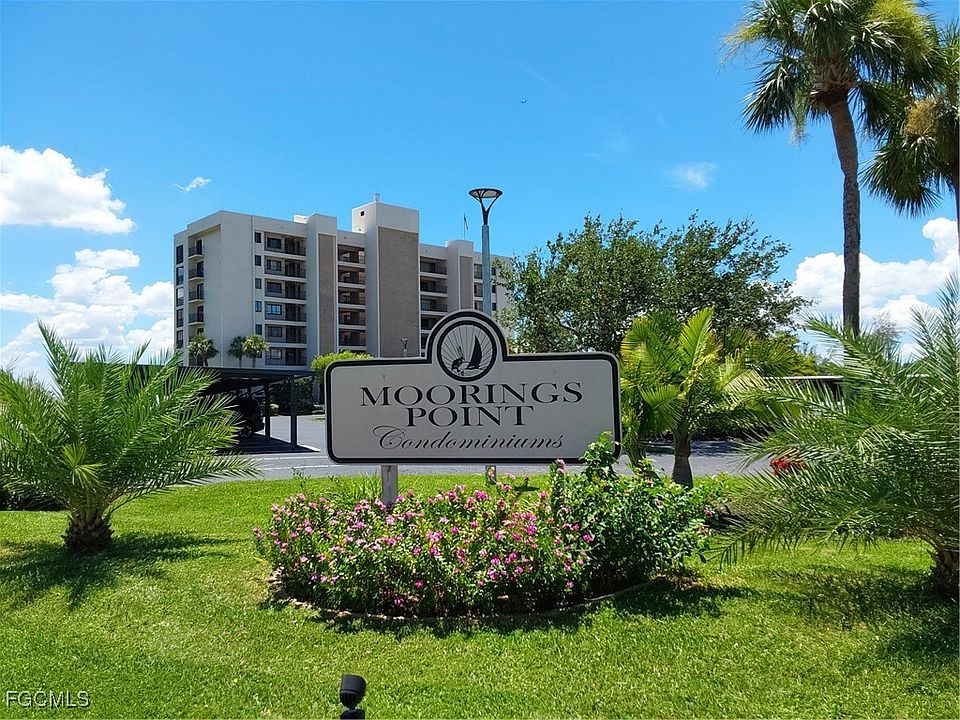 Waterfront, River views. This 2 bedroom 2 bath condo overlooks Downtown Ft. Myers. Quiet end of N. Key Drive. Small Highrise building waiting to be redone. Newer AC, New Hurricane Impact windows to be installed. Nice redone clubhouse with grill area, overlooking pool and River! This is one of the prettiest pool views in town. Condo is very easy to see. Time is right to BUY RIGHT! Take a few minutes to check this condo out, Just over the 41 bridge from Ft. Myers. Moorings Point is close to everything and at this price a great investment.