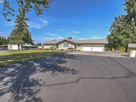 Drive up to your dream property. Move right in and enjoy this lovingly cared for daylight ranch 5 bed, 3 bath home sitting on 5 acres with views of the hills to the northeast with easy access to I-5. The main floor offers Brazilian cherry floors, two bedrooms including the primary, a large propane fireplace in the combination living/dining room and an eat in kitchen with views out the back to a large walk-out deck. The basement includes a large living area with a wood burning fireplace, a large utility room, 3 bedrooms, a full bath and a walkout to a large covered patio and plenty of storage. If you need additional living the basement could easily be converted. Outside in the gated property you will find mature landscaping with sprinklers and ample paved parking with a driveway to your large shop. Bring your toys, plenty of room to store them inside the 1,960 square foot shop or under one of the two 1,036 square foot lean-twos. The shop is wired for your projects with a large workbench, two sliding doors and an RV door with an automatic opener. A ring doorbell and six cameras around the property have been installed.