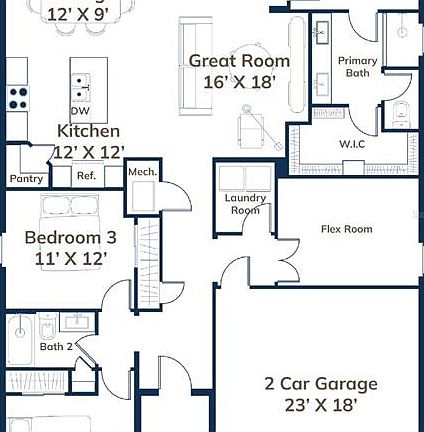 Two beautifully styled bathroomsThree spacious bedroomsLuxurious bathInviting open-concept layoutExpansive great roomExtended covered patio