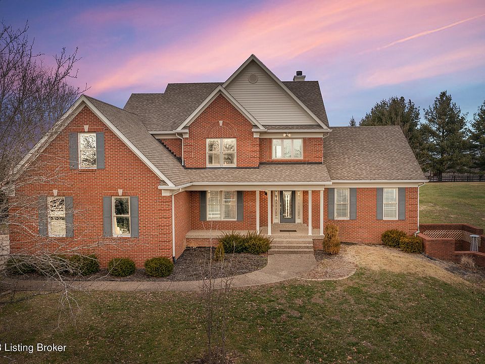 Beautiful 1.5 Story with finished walkout basement, next to Locust Grove and East Oldham Middle Campus. As you enter through the covered front porch to the foyer that has hardwood floors that continue through the dining room. spacious kitchen has tiled floors, large eat in area, pantry and is open to the great room. The 2-story great room features built-ins, gas fireplace, hardwood floors and crown molding. First floor primary bedroom has a tray and vaulted ceiling with crown molding, 2 walk-in closets, separate shower and jetted garden tub, dual vanities and a dressing table. To complete the first floor, there is a laundry room with cabinets for storage, and utility sink and countertop plus a half bath. Upstairs there are 3 good sized bedrooms all with walk-in closets. One of the bedrooms leads to a loft area overlooking the great room and another has its own private bath. There is a 2nd full bath upstairs to service the other 2 bedrooms. The finished walkout basement has a large family room, 2 additional rooms that would make a great office, an extra bedroom (no egress window), or workout room or playroom. The basement walks out to a private bricked courtyard with a metal gate. Enjoy the backyard from the covered deck that includes an uncovered portion to enjoy the sun and plenty of room for your grill and smoker. All this and close to I-71, Shopping and Award-Winning Oldham County Schools.