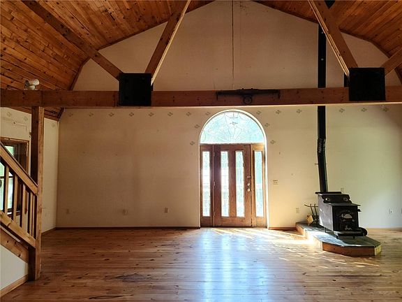 9.58 acres to roam and explore. This 1994 Gambrel-style home needs rehab. What a great opportunity. The main floor has 2 main rooms and several storage areas. The second floor is the main living area with an open floor plan, a wood-burning stove, a bedroom, and a full bathroom. There is a large walk-up loft area with a full bathroom. The outdoor space is mostly wooded. There is a 4-stall horse barn and a small pond. Please do not enter the property without an appointment. The seller will make no repairs, being sold as is. Tax records indicate 3 bedrooms, there are only two bedrooms.