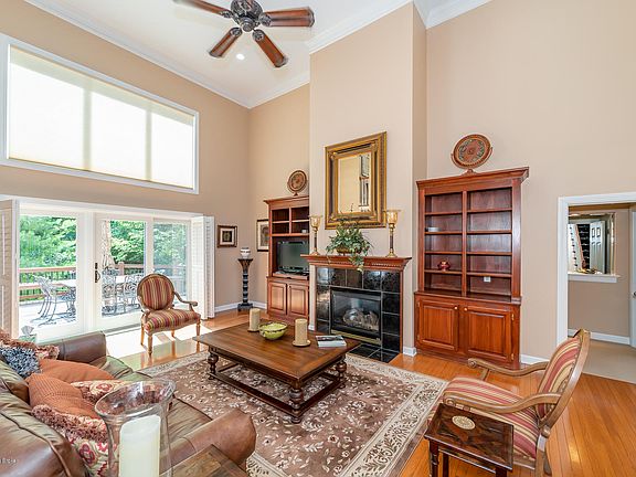 This beautiful one owner sits at the front facade of the Bridges of Razor Creek and has been lovingly cared for. New roof only one month old (June 2020). The professional landscaping (Farison Lawn Care) is complemented by the landscape lighting (Kiser Outdoor Lighting), irrigation system (Evergreen Irrigation) and a ''park-like'' back yard that is surrounded by trees and creek and provides so much privacy. The expansive deck covers nearly the entire rear of the house and is a perfect retreat for entertaining. As you enter the home you are open to a two story vaulted foyer and great room with warm earth tone colors, ceiling fans, recessed lighting and large windows that are complemented with high-end plantation blinds. The gas fireplace is ''book ended'' by two large book shelves and TV