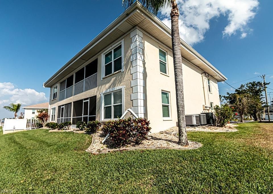IT'S ALL ABOUT THE VIEWS! Stunning view of one of Cape Coral's widest canals. This corner, 1st floor unit offers a 1,022 sf open floor plan with 2 bedrooms & 2 full baths offered turnkey, as-is. With intersecting canal views from the screen in lanai and Main Bedroom provide endless peace & tranquility. Move in ready to begin your vacation or vacation renting on a quiet cul-de-sac. Beautiful new kitchen, new windows, new roof, a/c (1 yr old). Close to downtown, restaurants, entertainment and beaches. THIS WON'T LAST LONG!