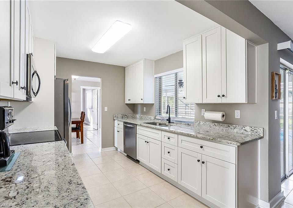 Here's your chance to own a COMPLETELY REMODELED beautiful POOL home in SOUTH Cape Coral! Even down to rewire & repipe plus BRAND NEW AC; remodeled summer 2020 & it shows! Walking distance to Downtown Cape, the first thing you'll notice as you pull up & step inside is how fresh, airy & clean the home feels! New paint, lots of sunshine & tile thru the living areas welcome you in where you'll find a BRAND NEW kitchen. EVERYTHING is just a couple months new here! Shaker style cabinets, neutral lvl 2 granite & SS appliances create a kitchen you'll love cooking in! NO CARPET in the home; wood-look floors were just installed in the bedrooms! Did I mention lg closets in every room + storage spaces tucked throughout? Brand new super fresh & clean guest bath & the new master bath carries neutral tones through the remodeled shower & vanity! Seriously, the inside of this home is basically new construction! Outside, enjoy a large covered lanai & plenty of open deck space, still allowing for a generous yard! Neighbors all have fences so it'd be easy to create a fenced in yard for little or furry feet to safely play! *REALTORS SEE CONFIDENTIAL COMMENTS: H&B BY 1/2/21**