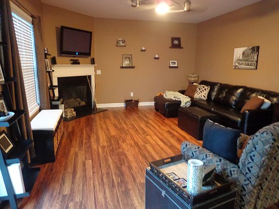Two story, 3 bedroom, 2-1/2 bath home with a welcoming front porch. Den has a cozy gas log fireplace and opens to a patio/ deck which is perfect for entertaining and grilling. Dining room with chair railing. Kitchen has a tile backsplash and a built-in microwave. Updated appliances. New LVP flooring on the main level; foyer with engineered hardwoods. Master suite with a large walk-in closet. Also en suite bath with double vanity sinks, garden tub and walk-in shower. Two additional bedrooms for family, guests or office. Large fenced in backyard with play-gym.
