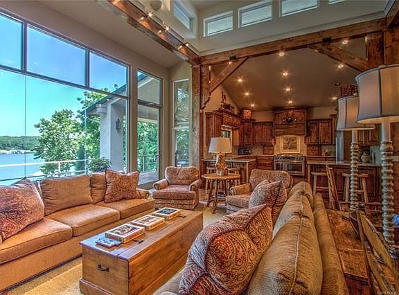 Stunning split level lakefront property in the middle of Duck Creek! Ample space for entertainment throughout the home, outside by the fireplace, or down on the dock. 3 beds on main level. 3 beds down, along with 2 addtl rooms being used as bedrooms. Expansive outdoor spaces, amazing, updated three slip dock with upper deck and large storage closet. Large lift stays. Beautiful neighborhood with mature trees, and great view of Duck Creek. Close to all of the Grand Lake Action.