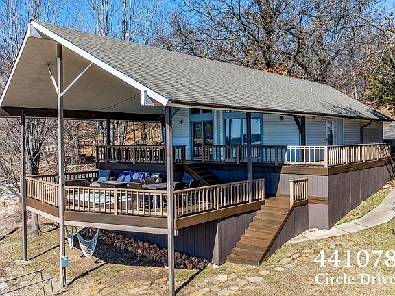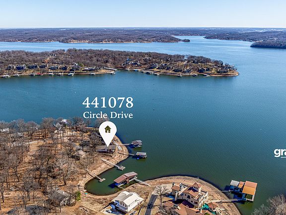 Hurry fast! It's a DUCK CREEK WATERFRONT HOME WITH PRIVATE BOAT DOCK UNDER $500,000! Stunning views, with expansive 700 SF covered deck updated with composite decking. 30 ft. boat slip in private dock updated with encapsulated foam. Interior offers open living area with fireplace and separate wet bar area beside kitchen. Updated flooring throughout home. Primary suite offers private bath. Close to all South Grand Lake amenities by water and land! Located in a quaint lake neighborhood with paved roads to home. Short term rental friendly. Don't wait! Call to see property today.
