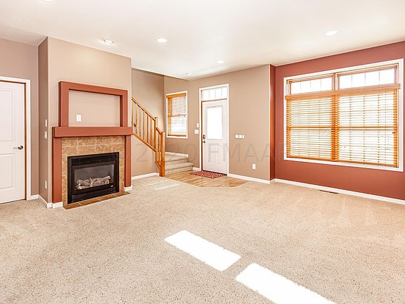 Great end unit Estoria Heights 2 story upscale townhouse with a convenient South Fargo location. No Shoveling / no mowing lawn! This is well planned town home with open concept on the main level, formal dining, large kitchen, stainless steel appliances, maple cabinets and gas fire place in the living room. Two large bedrooms and Laundry upstairs! Master suite has Jack and Jill bath with double sinks and private water closet. 22'x22' garage with an additional 10' x 14' storage garage. Sprinkler system, Pets allowed