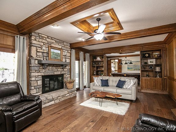 Majestic Luxury Home; Total Remodel; Jenks SE School; Sam Hollinger Custom Build; prev. Parade Home; .5+ acre wooded lot; Heated SW Pool/Spa; Gazebo; Full patio/deck; fire pit; cooking area; over sized 3 Car Garage w/private entry; secluded back yard; Electric Gate; Circle Drive; Porte-Cochere; Shed; Boat Playhouse; Theater; Game room; Large kitchen w/dining; Double Rm Master Bedroom w/FP and Balcony; Cathedral Beamed Ceilings; Exquisite Crown Molding throughout; non-thru street. Seller/Agent