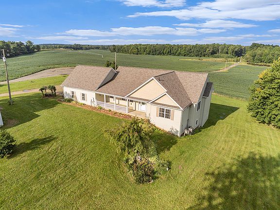 Privacy in the country! 2008 built ranch style home sits on 5 acres and features 4 bedrooms, 3 bathrooms. Open concept kitchen/dining/living room combo. Kitchen with beautiful wood cabinetry, food pantry, center island with cooktop, and stainless-steel appliances. Spacious primary bedroom with walk in closet, jetted tub, separate shower and double sinks. 3 bedrooms & 2 full bathrooms on the main floor with the possible 4th bedroom/office and mostly completed 3rd full bathroom on the lower level. The lower walk-out level has endless possibilities with an estimated 1500 Sq Ft of unfinished space for your creative ideas. Lower level has radiant heated floors that are heated with wood. Please note: the entire home is heated with wood or propane and the seller is leaving an estimated year supply of wood for the new owners. Heated 2+ car garage and large pole barn with electric and cement floors. Fenced in pet area, large front porch, barn for wood storage is just a few of the extras. Call Listing agent Bill Thompson at 269-832-3359