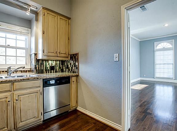 This beautiful, move-in ready home has gleaming hardwoods, 10 ceilings, windows framing trees, and lots of natural light! Impeccably maintained, it offers a huge living-dining area, a completely redone master bath, crown and floor molding throughout, French doors with solar screens opening to a sunny 24 X 30 patio with lovely views, a garage with two spaces, and a dog park across the street. A quiet and special find in the heart of Oaklawn!