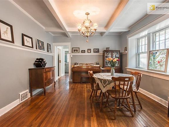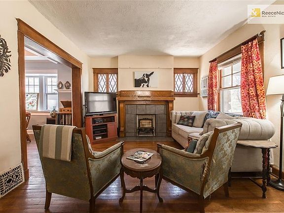 Classic KC Shirtwaist with 3 stories and full of charm. Stunning view of the park direct from the large front porch. Living room w/ fireplace & built-in bench in entryway. Gorgeous original woodwork throughout & BoxBeam ceilings in dining room. 1st floor laundry in half bath. Martini deck off 2nd bed, sunroom off 3rd bed, huge master w/ fireplace, 4th bed & bonus room on 3rd floor w/ private bath. Mudroom, Private driveway with a 2 car garage and raised garden beds in back. Great house for a family!