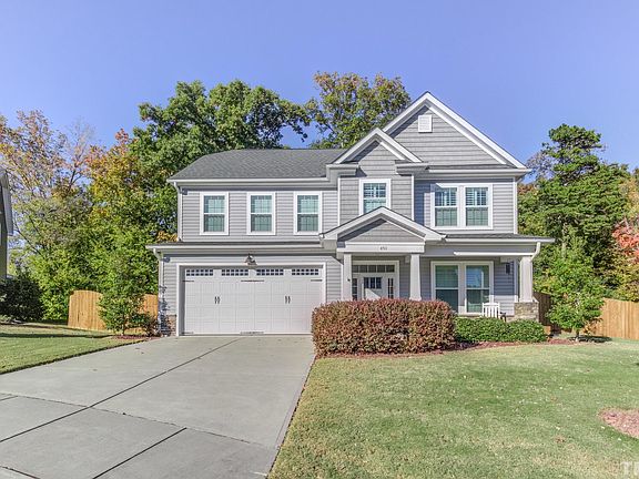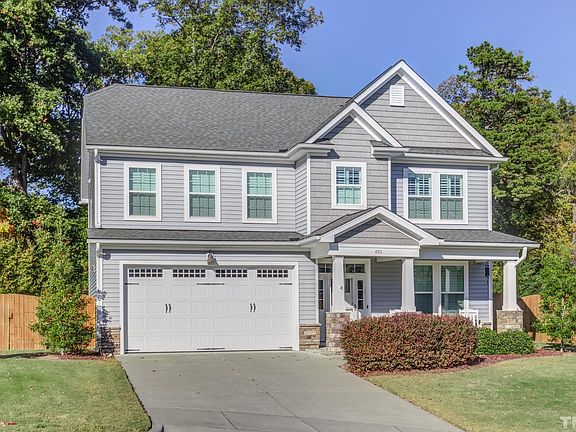 Better than new home w/an abundance of charm. Fenced backyard & perfectly positioned on 0.23acre cul-de-sac lot. Convenient to DT Raleigh, RTP 264, 540. Open design, spacious family room w/fireplace, bright white eat-in kitchen & dining. Granite, tile, SS appl, hardwoods, office w/dble French glass doors, private owners entry w/dropzone. 2nd flr owners suite, dual WIC, garden tub, sep shower, 2 addl BRs & open loft bonus. Enjoy the quiet treelined backyard, screened porch & patio. Comm pool & playground.