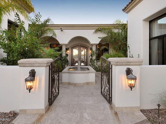 Offering the warmth & tradition of Mediterranean-style architecture, with a strikingly sophisticated & thoughtful interior design, this 4BR/6BA home built in 2009 is an absolute standout! On over 1.5 acres w/sweeping city & mtn. views, offering the ideal floor plan for entertaining or everyday living. Features include: lush courtyard entrance, travertine tile & hand distressed wood floors, gourmet kitchen w/Sub-Zero, Wolf, & Bosch appliances, granite & marble counters, alder cabinetry, butlers pantry/bar, wine room,stylish library, spacious master suite & bath, steam room,sparkling pool & spa,gated driveway,travertine motor court & 3 bay garage, Timeless in style and positively addicting, this home does not disappoint!